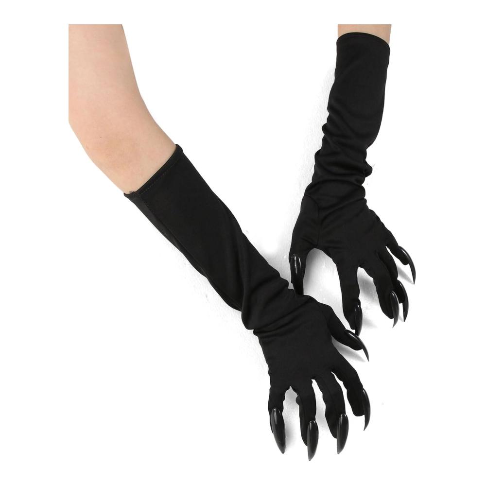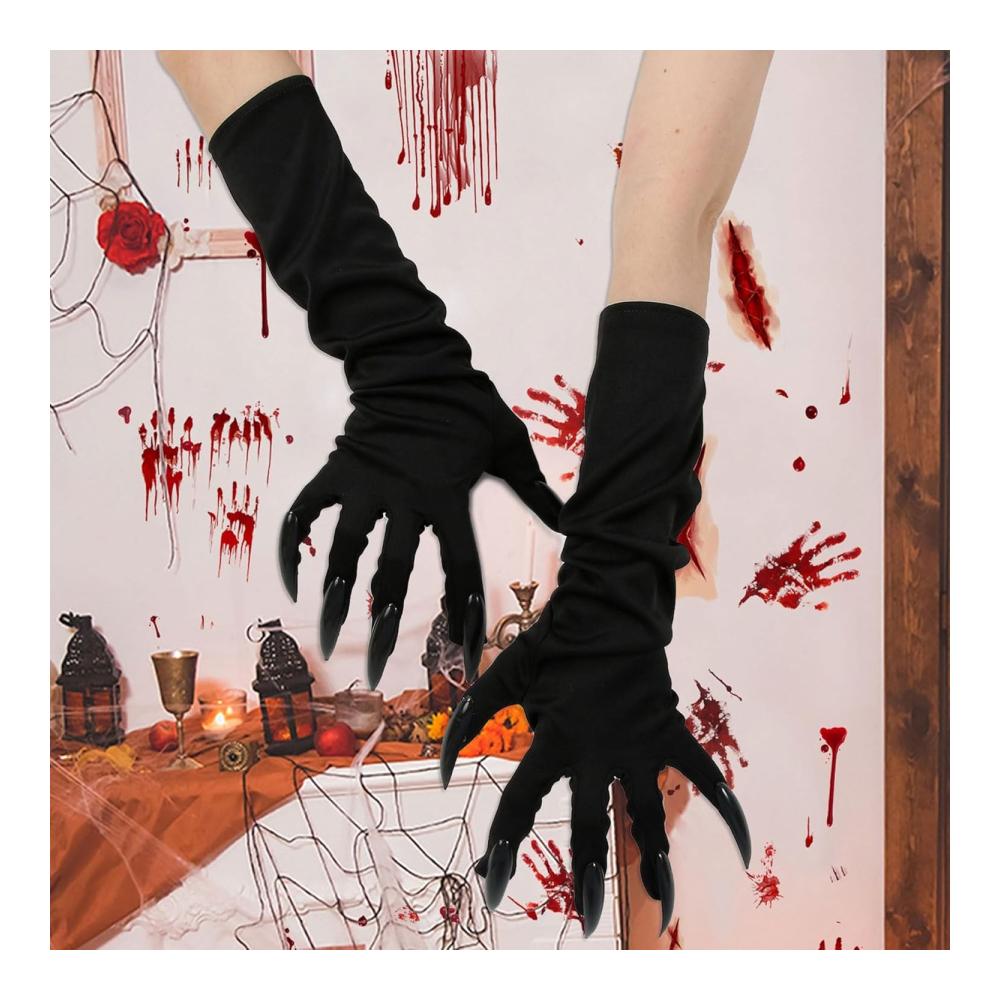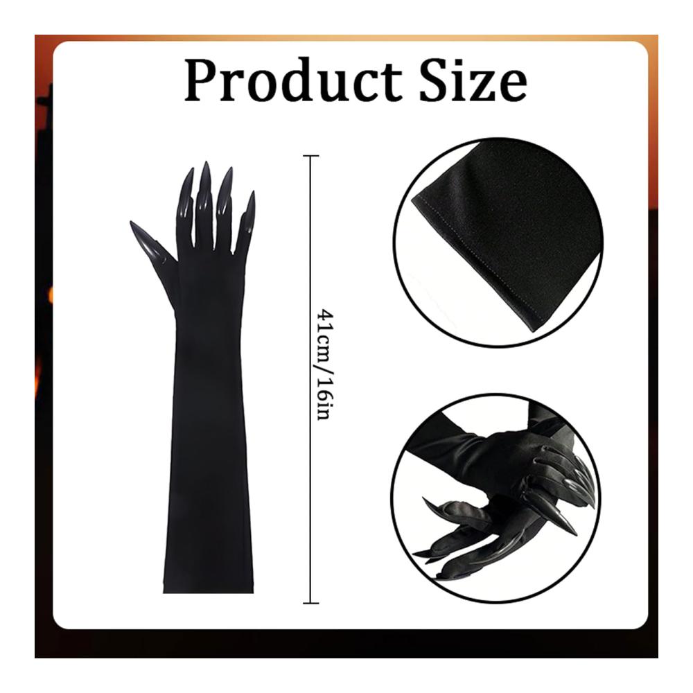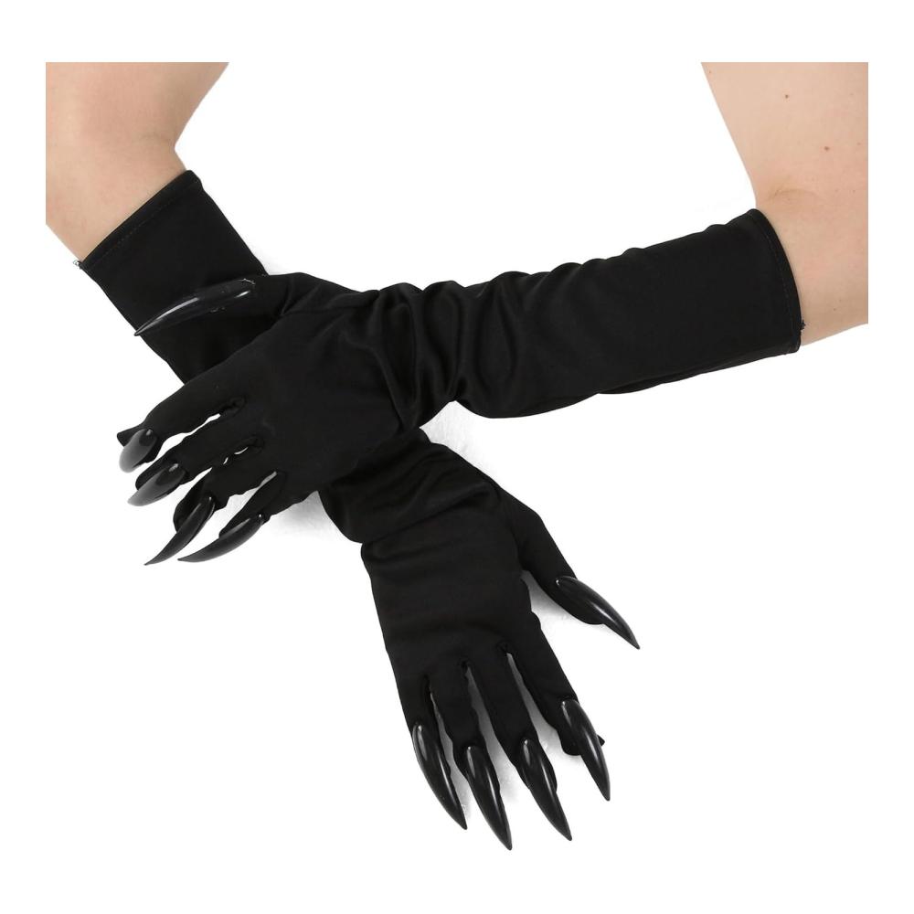 true to and themes of werewolves, wolves, black bears, gorillas, and other mythical or safari-inspired , this pair of gloves perfectly complements outfits that embrace the spirit of the evening. With their long black plastic nails designed to extend gracefully from the fingertips, these gloves set a tone of mystery and suspense, ideal for adding a striking and eerily fantastical touch to your party attire or costume.