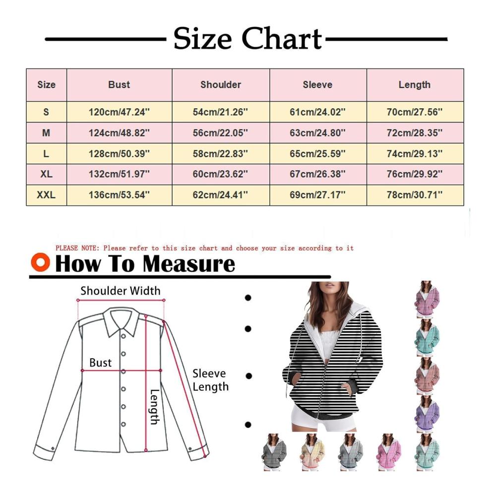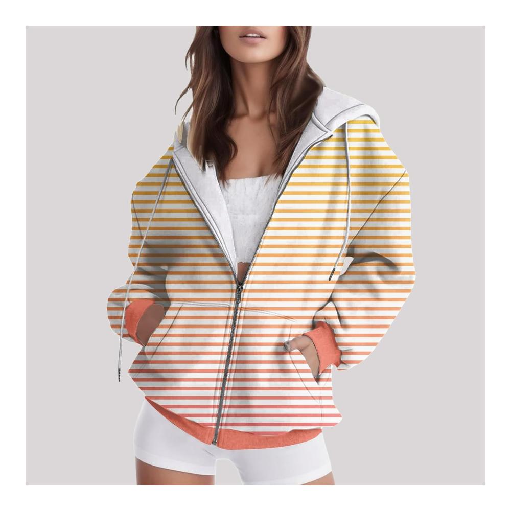 Long Zip up Sweatshirt Women’s Casual Fashion Style Autumn/Winter Striped Print Zipper Pocket Top Sweaters Hoodie WomenWomen’s casual fashion style Autumn/Winter striped print zipper pocket top hoodie Material: Polyester Color: as the picture shows, (Due to the difference between different monitors, the picture may have slight color difference. please make sure you do not mind before ordering, Thank you!) Package weight: 500g Package size: 30x30x2cm,(Please allow 1-3mm error due to manual measurement. please make sure you do not mind before ordering.)