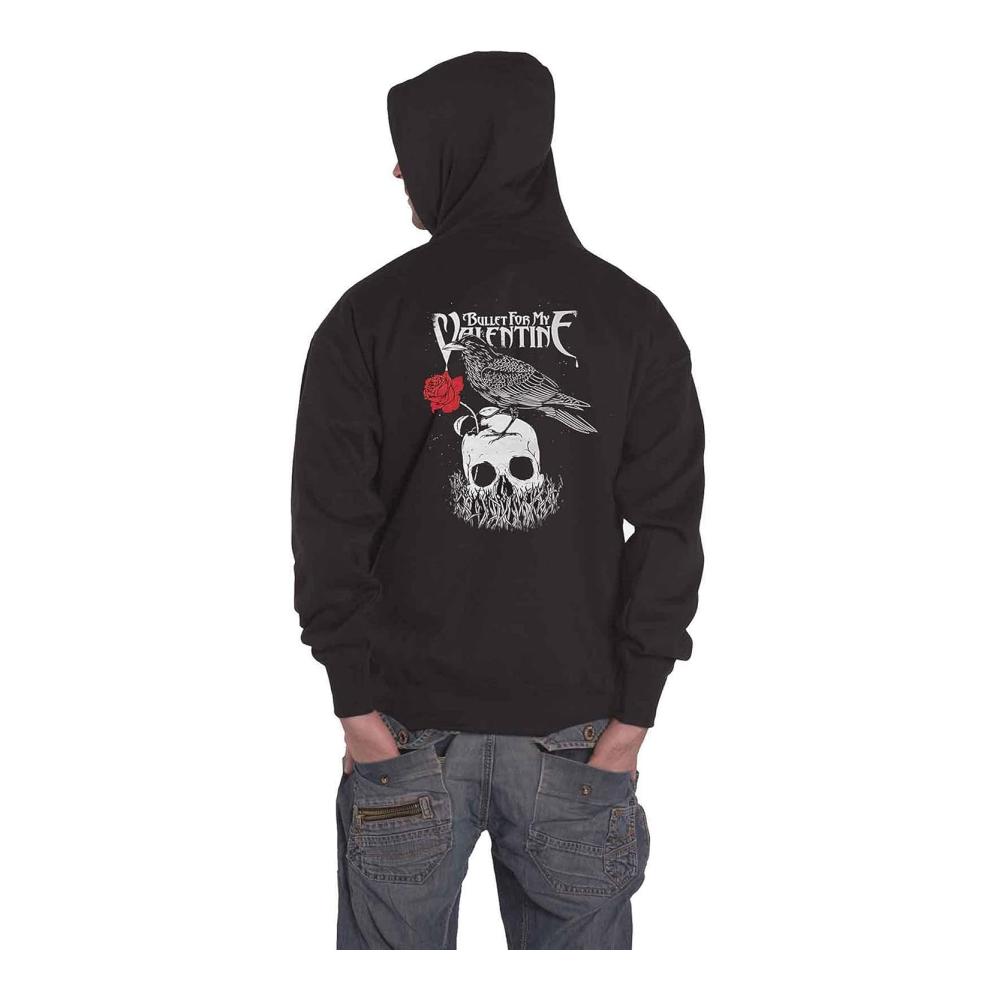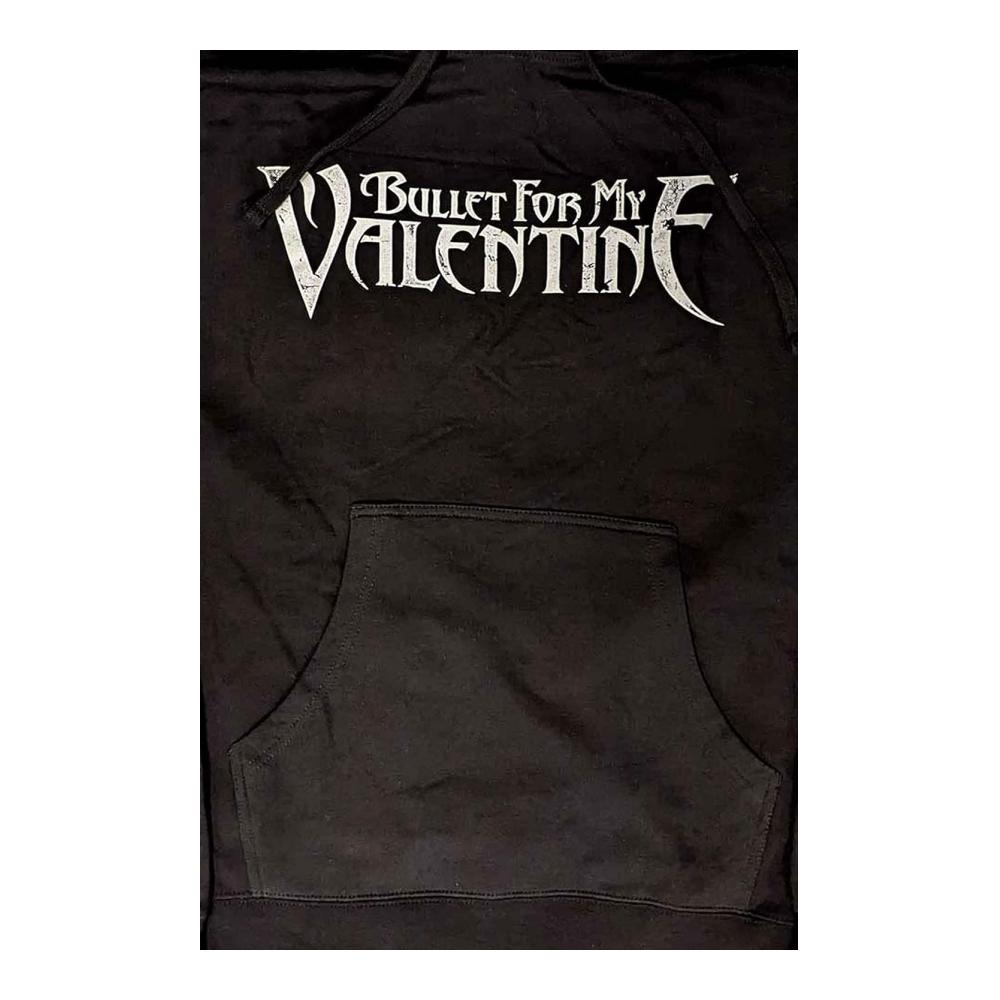 An official licensed Bullet For My Valentine Unisex Pullover Hoodie featuring the ‚Logo & Raven‘ design motif. This high quality Pullover Hoodie is available in a black colourway. High quality cotton pullover hoodie with long sleeves, hood with drawstring and pouch pockets. Features front and back printing. Comes in a wide range of sizes from Small through XX-Large, subject to availability.
