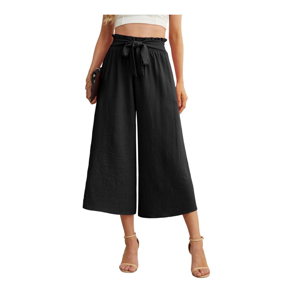 Damen Weite Loose Fit Sommer Strandhose Business Casual Hose Hochtaillie Knoten Adjustable Work Trouser Frauen Flowy Wide Leg Pant