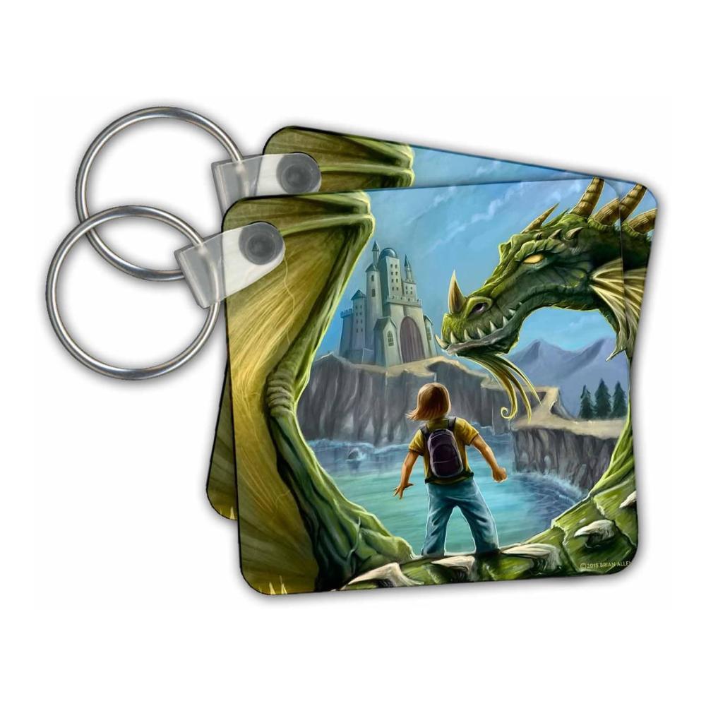 Schlüsselanhänger Magischer Drache mit Junge auf dem Rücken auf dem Weg zur Schule Mystischer Drachen Schlüsselanhänger Schulaccessoires für Kinder Drachenliebhaber Geschenk