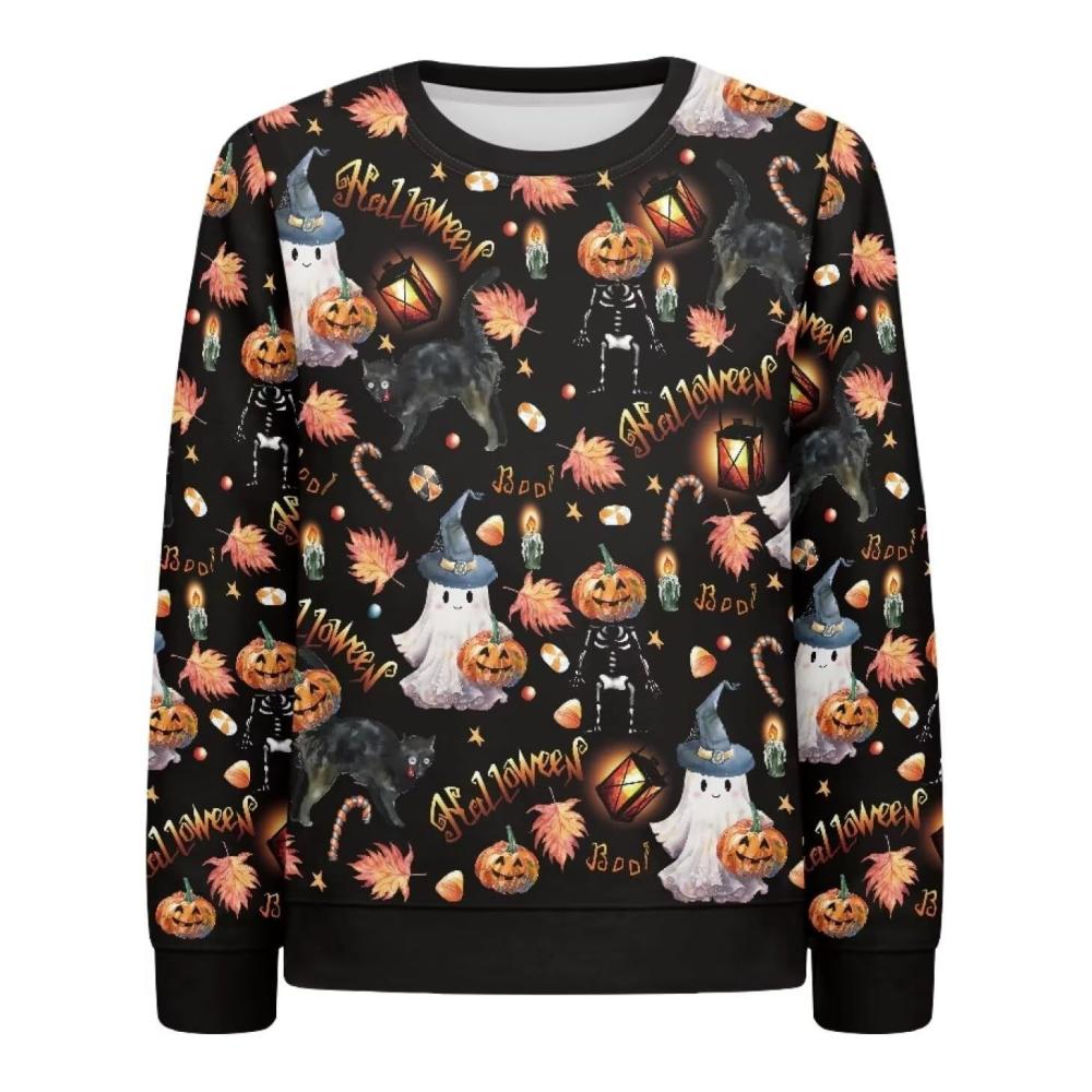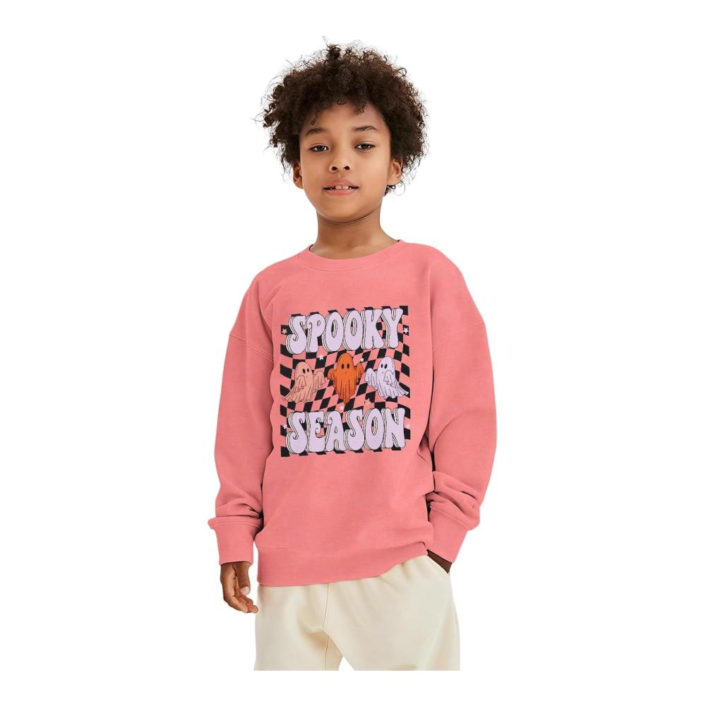 Langarm-Kinderpullover für Jungen und Mädchen Spukiges Halloween-Shirt Geister-Grafik Crew-Hals Sweatshirt Spooky Season Langarm-Oberteil Gruselige Buchstaben-Druck