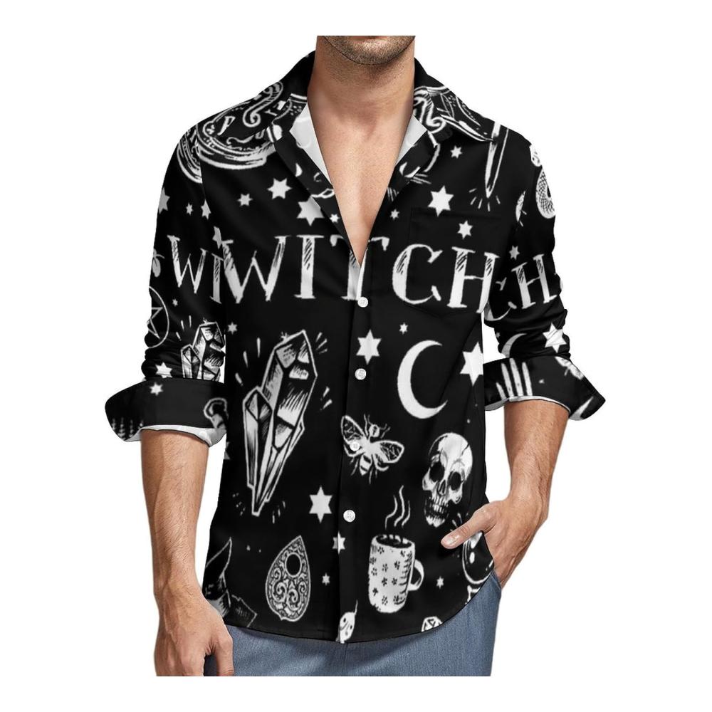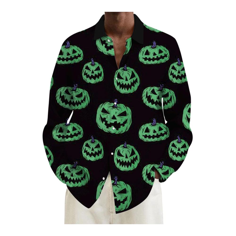 Herren-Halloween-Kürbiskopf-T-Shirt bedrucktes Langarm-Hemd für Herbst Casual-Button-Down-Tops Urlaubs-Kostüm