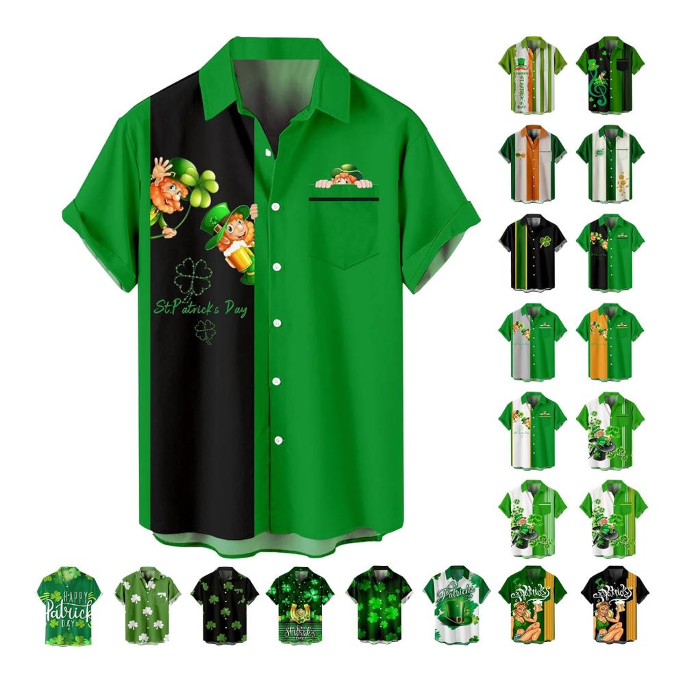 St Patricks Tag Hawaii-Hemden für Männer Lustige Irische Flagge Shamrock-Druck-Knopf-Hemden Casual Sweatshirts lockerer Sitz