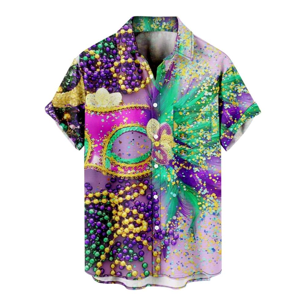 Männer Karneval Hemd 2024 Mardi Gras Outfit Print Kurzarm Front Buttons Casual Trendy Tops für Männer Karnevalsshirt für Herren