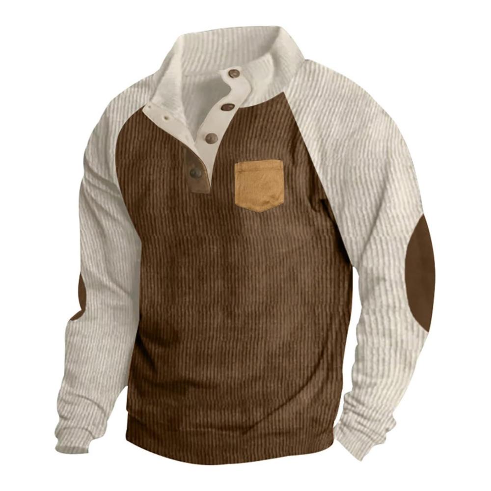 Herren Cord-Sweatshirts Viertelknopf-Stehkragen Freizeitpullover Patchwork Farbblock Fleecejacken