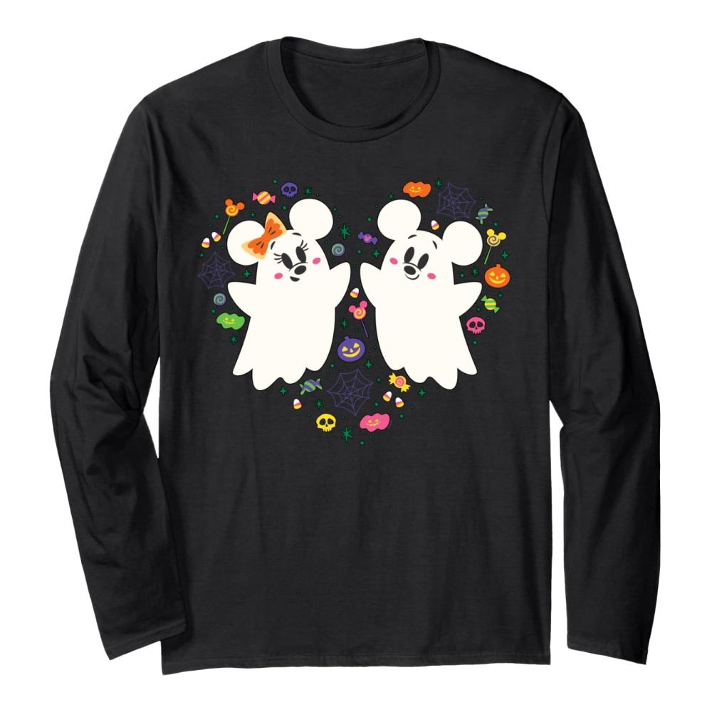 Süße Mickey und Minnie Kleine Geister Halloween Herz Langarm-Shirt für Kinder und Erwachsene Weihnachts- und Halloween-Geschenkidee
