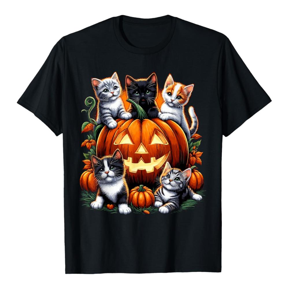 Halloween-Katzen-Retro-Blumen-Spooky-Pumpkin-T-Shirt für Damen und Herren Weihnachten Geschenk Herbst Mode Gruseliges Halloween-Shirt