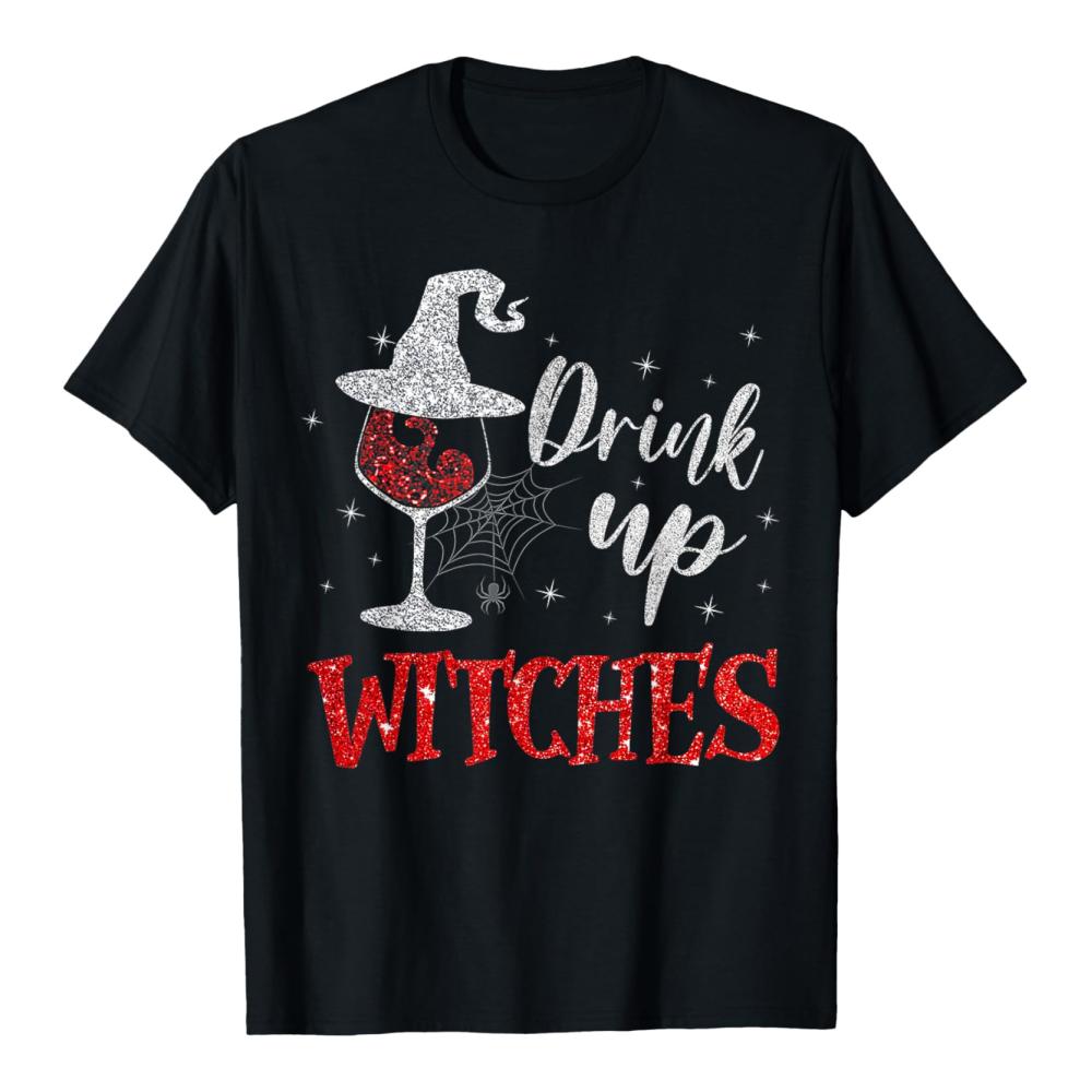 Halloween Weinglas Trinken Witches Lustiger Trinken Wein T-Shirt für Frauen Weihnachtsfeier Party Geschenk