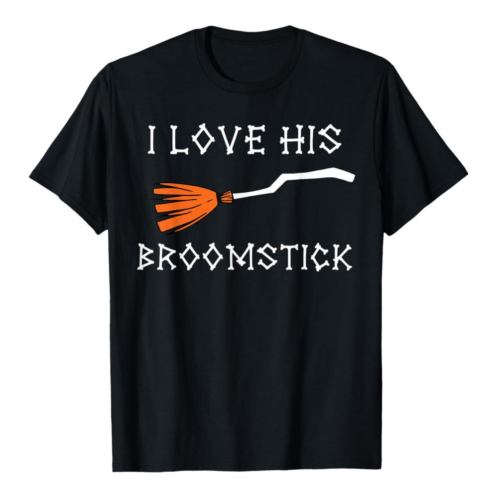 Halloween-Kleidung für Paare I Love His Broomstick I Love Her Pumpkins Paar-T-Shirt für Herbst und Halloween Kostümideen für Paare Gruselige Paar-T-Shirts